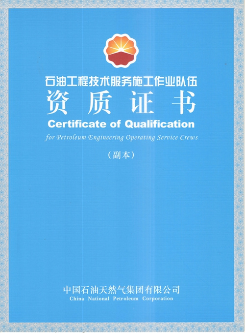 大慶東油15001隊(duì)(大慶油田)資質(zhì)證書(shū)