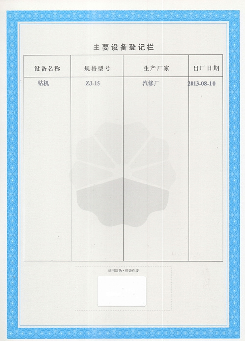 大慶東油鉆井企業(yè)資質(zhì)證書(shū)