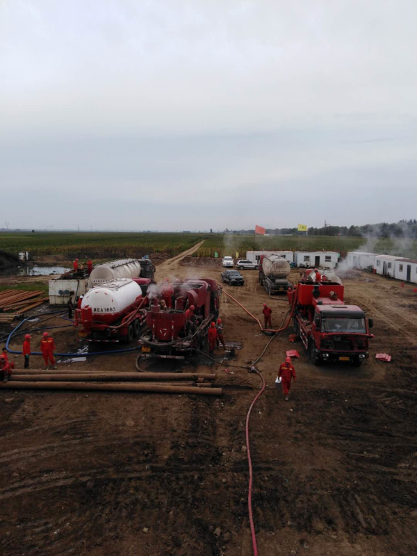 2018年8月23日,大慶市東油鉆采有限公司固井隊對這口井進(jìn)行完井固井施工。注灰低密度55方,原漿22.5方,替泥漿32.2方,水泥漿返出地面,施工**順利,一切正常,很圓滿。
